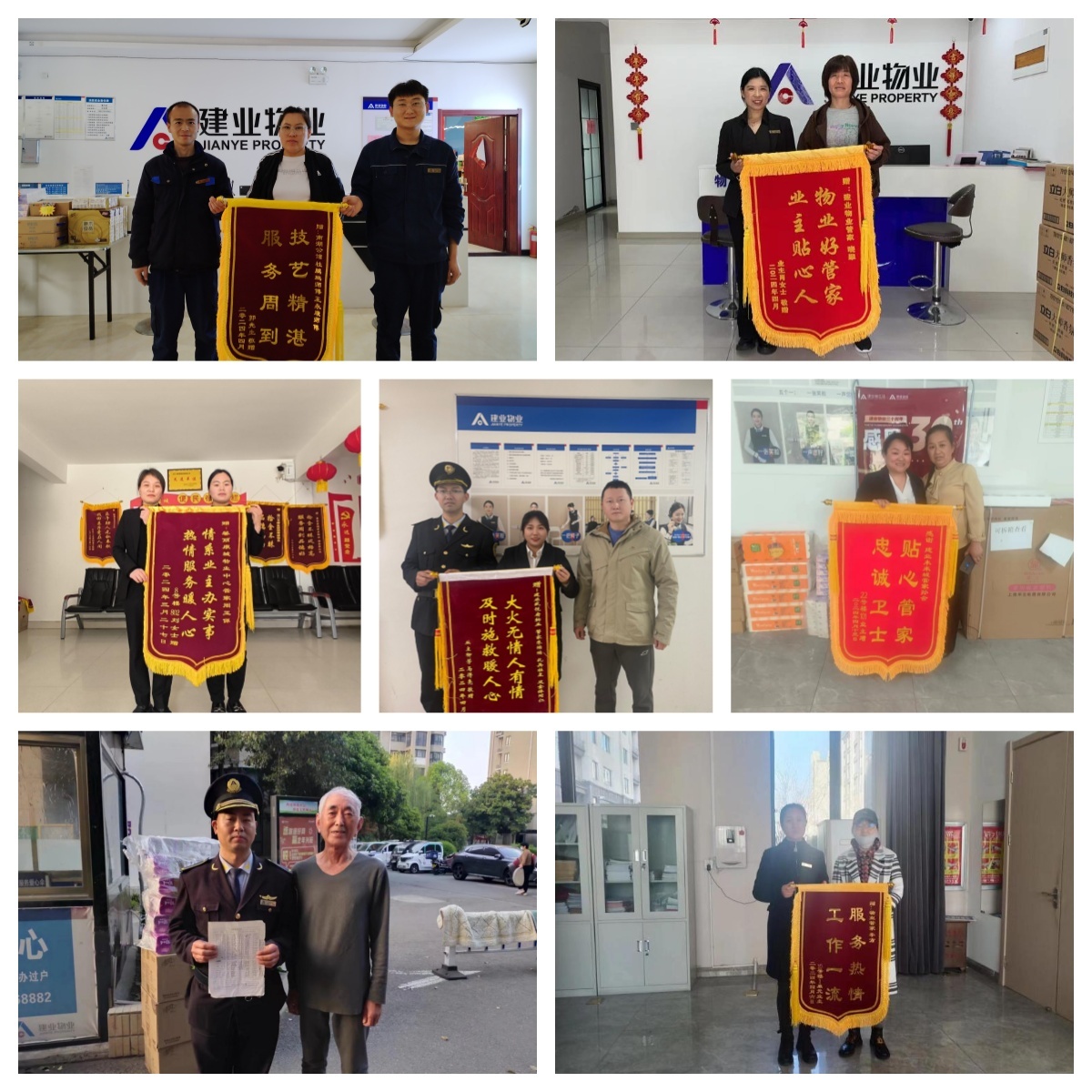 4月,建業(yè)物業(yè)在管園區(qū)共涌現(xiàn)出好人好事852件,其中錦旗229面、感謝信87封、致電表揚525次。