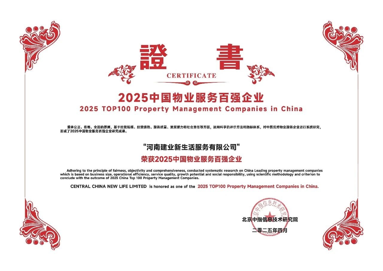 2025年4月18日,由中指研究院、中國房地產(chǎn)TOP10研究組主辦的“2025中國物業(yè)服務(wù)百強(qiáng)企業(yè)研究成果會”在雄安新區(qū)舉行。建業(yè)新生活以其卓越的服務(wù)品質(zhì)和持續(xù)的業(yè)務(wù)創(chuàng)新,蟬聯(lián)“2025中國物業(yè)服務(wù)百強(qiáng)企業(yè)”第11位、“2025中國物業(yè)服務(wù)百強(qiáng)企業(yè)服務(wù)規(guī)模TOP10”。