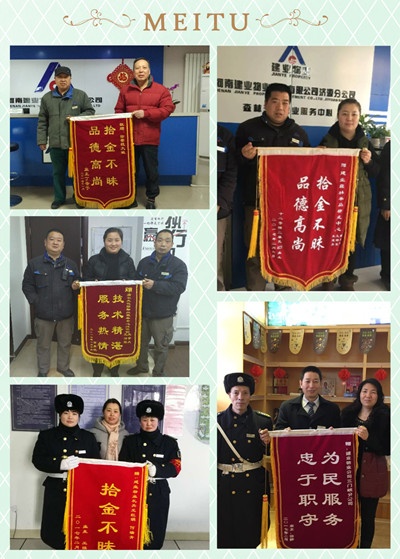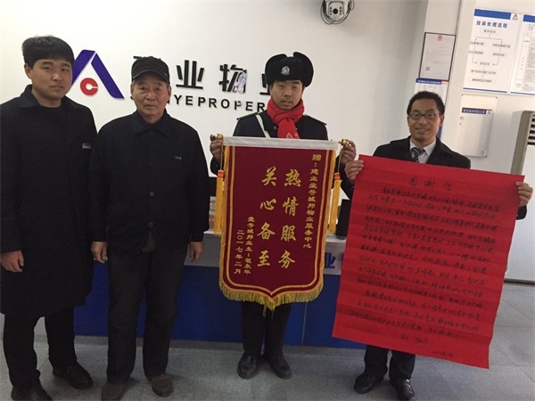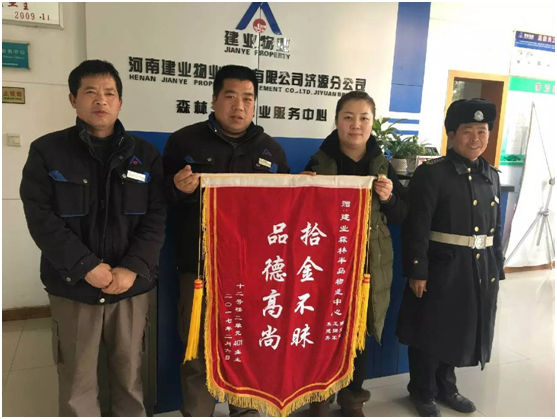 濟(jì)源·建業(yè)森林半島某業(yè)主家親戚來訪,歡聚一堂,下午在親戚準(zhǔn)備離去時(shí)發(fā)現(xiàn)自己的隨身紅包(內(nèi)有約2000元現(xiàn)金)不見了,著急的樓上樓下來回跑,此情此景恰好被綠化工朱建齊看見,他主動(dòng)上前詢問又現(xiàn)場(chǎng)幫忙尋找,且致電辦公室救援,值班人員王擁軍、陳文忠收到信息后,立即開始查找監(jiān)控,連續(xù)翻閱視頻13個(gè)小時(shí)終于找到了,此時(shí)已是深夜11時(shí)。次日急忙撥通了失主的電話通知其前來領(lǐng)取,業(yè)主親戚對(duì)建業(yè)物業(yè)認(rèn)真負(fù)責(zé)的態(tài)度連聲夸贊,并送錦旗一面。