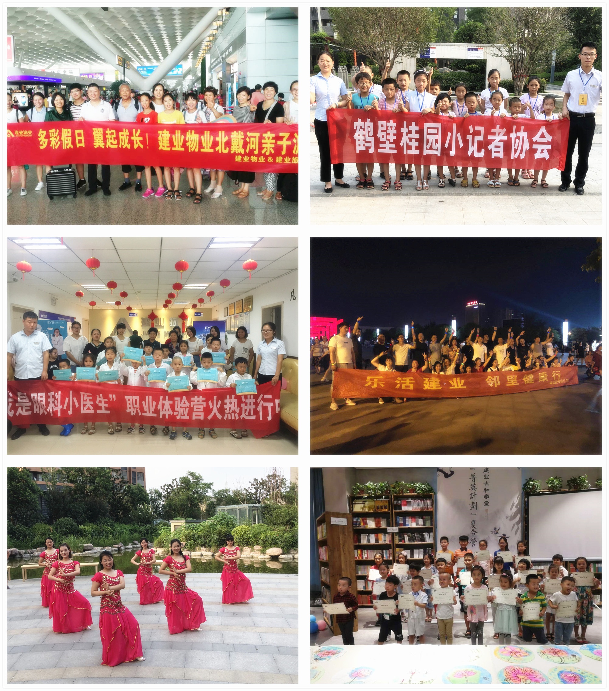 2018年7~8月,以“成長(zhǎng)建業(yè)·多彩假日 翼起成長(zhǎng)”為主題的建業(yè)物業(yè)第三階段社區(qū)文化活動(dòng)在全省建業(yè)小區(qū)順利開展。本階段共組織活動(dòng)408場(chǎng),累計(jì)參與80000余人次,贏得了廣大業(yè)主、媒體和業(yè)界的廣泛關(guān)注及一致贊譽(yù)。