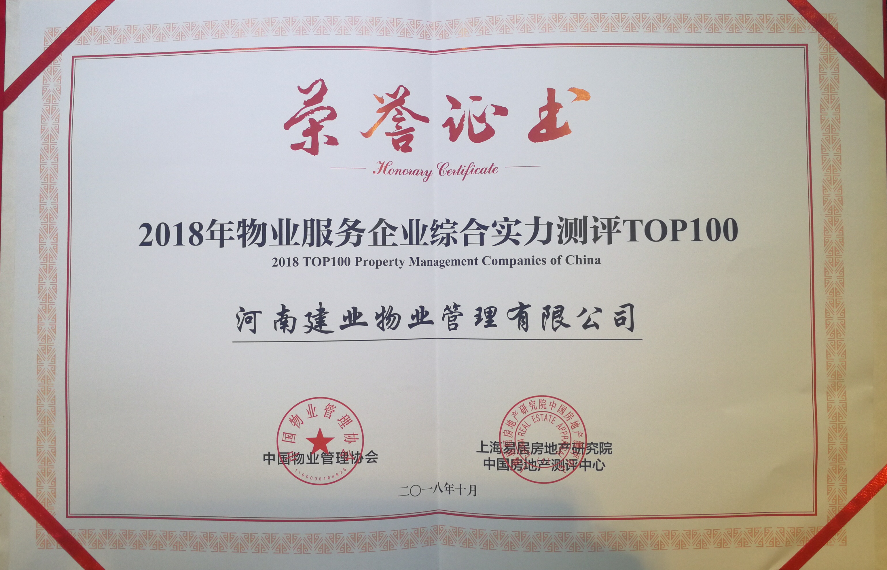 建業(yè)物業(yè)榮登中物協(xié)“物業(yè)服務企業(yè)綜合實力TOP100”15強