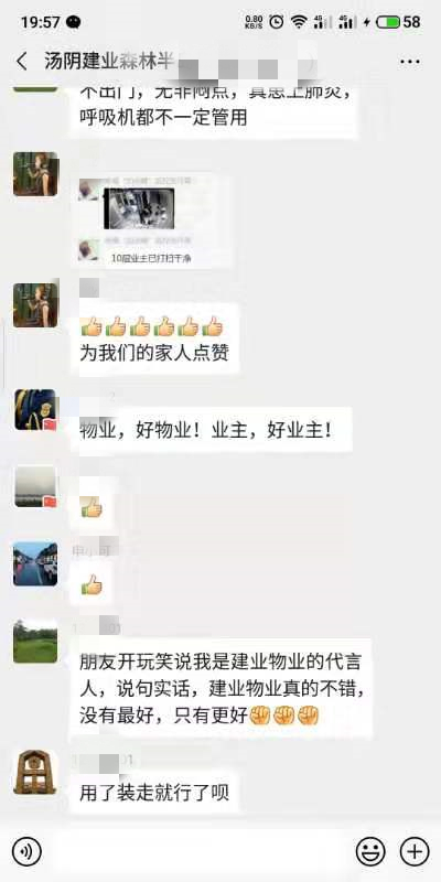 看著朋友圈、業(yè)主群的點(diǎn)贊以及業(yè)主當(dāng)面的表?yè)P(yáng)與叮囑,奮斗在一線的建業(yè)物業(yè)人倍感溫暖,也更加充滿力量了。