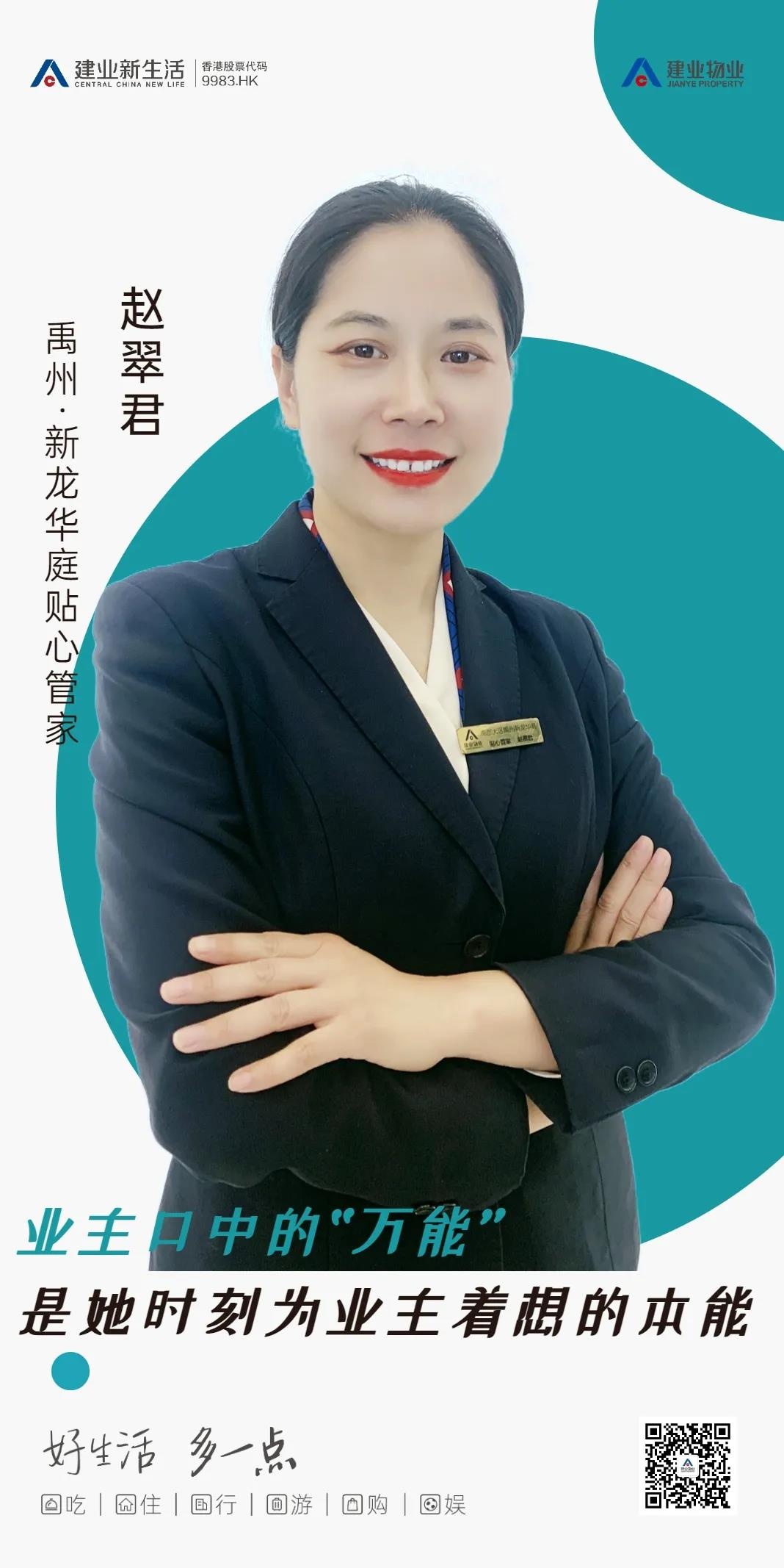 張靜萍加入建業(yè)物業(yè)5年有余,她運(yùn)用多年的管理經(jīng)驗(yàn),憑借自己的組織協(xié)調(diào)及溝通能力,在管家崗位上幫助業(yè)主解決問題千余件,早已成為業(yè)主最信賴的家人。