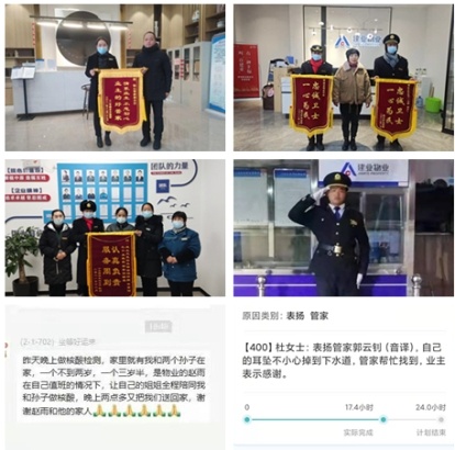 1月份,建業(yè)物業(yè)在管園區(qū)涌現(xiàn)出好人好事1094件,其中收到錦旗221面、感謝信159封、其他致電表揚(yáng)等714次。