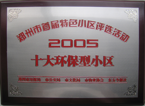 2005年9月7日,“金水花園”獲得鄭州市物業(yè)管理協(xié)會、鄭州市環(huán)保局、鄭州市公安局、鄭州市文化局和東方今報社頒發(fā)的鄭州市首屆特色小區(qū)評選活動中的“2005年十大環(huán)保型小區(qū)”和“2005年十大服務型小區(qū)”稱號。